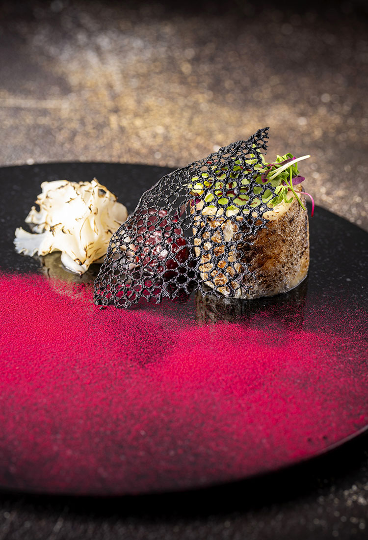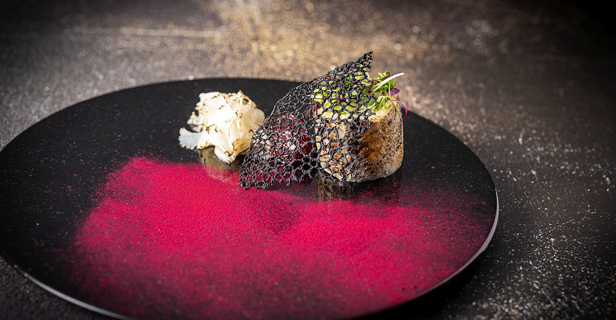 デギュスタシオンスタイルで少量ずつ多彩な料理を楽しむ、袴田シェフの技術とアイデアが光るクリエイティブなディナーコース。