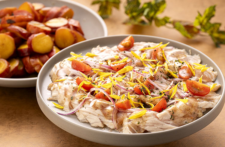 ・塩麹でマリネした鶏もも肉のオーブン焼き 和風葱塩ソース